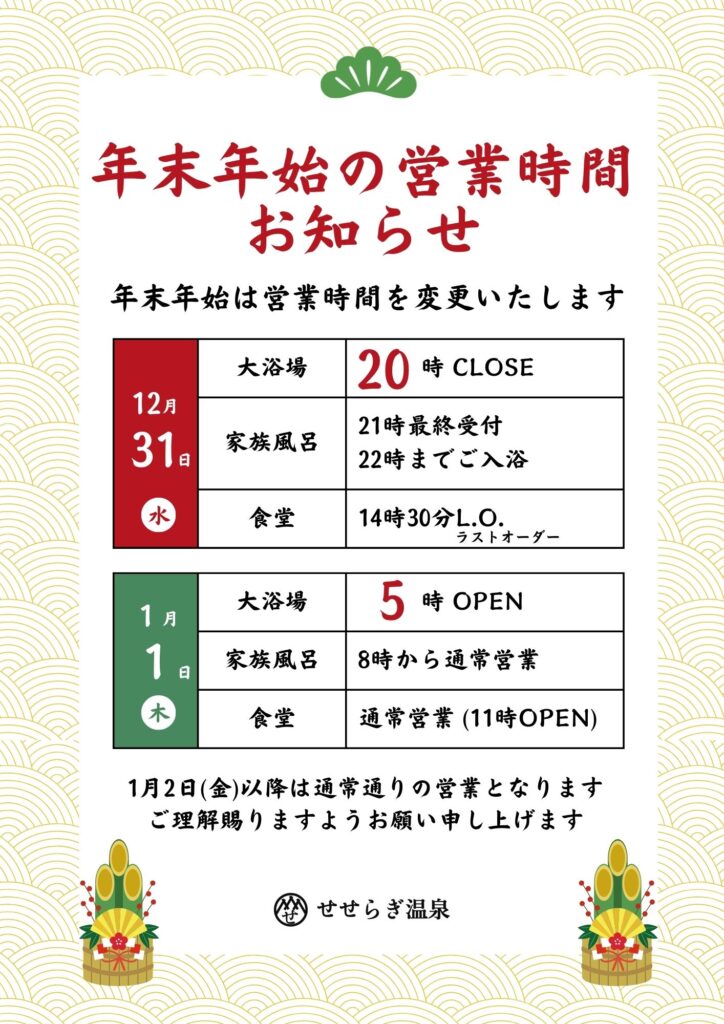 【お知らせ】年末年始の営業時間について